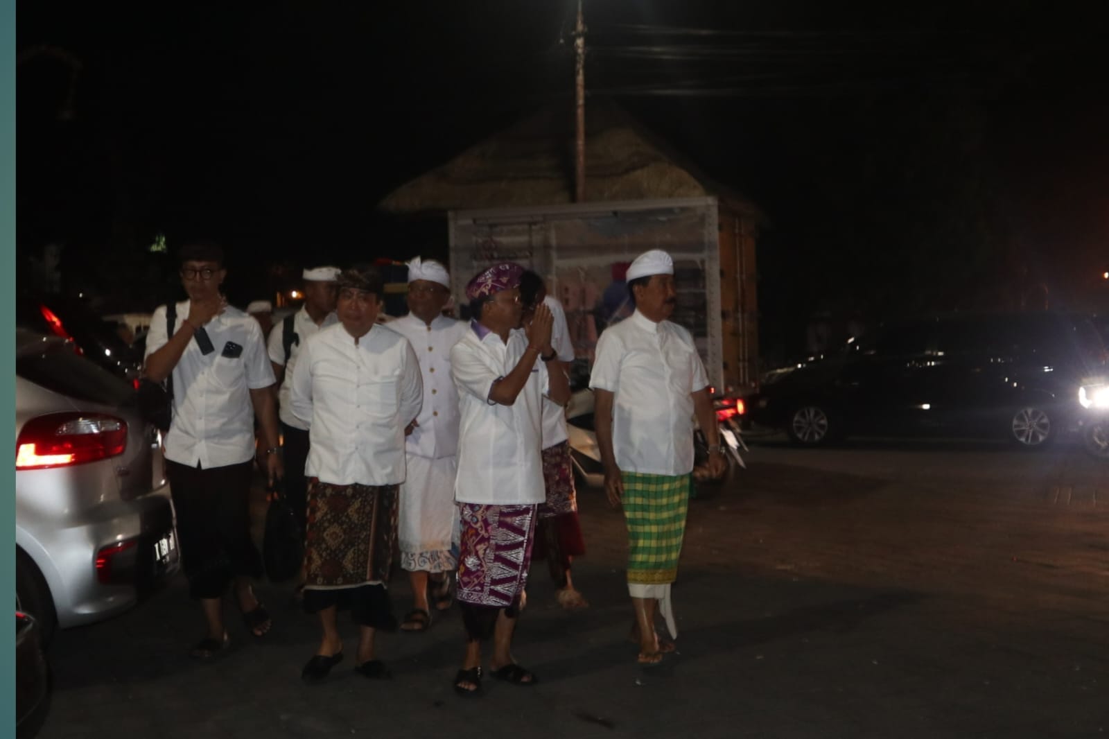 Menarik disimak moment ini. Karena situasi pura yang padat pemedek, Ida Agung Gde Agung mengajak Koster dan rombongan berjalan kaki dari Puri ke Pura. Kendaraan rombongan dan keluarga tetap diparkir di halaman Puri.