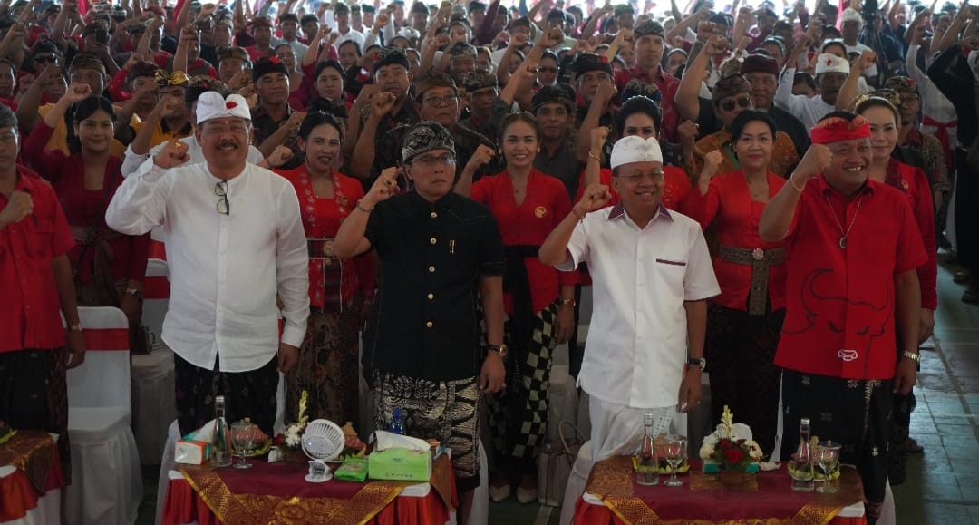 GIANYAR – VISIBALI.COM. Sekitar 2 ribu lebih warga Kabupaten Gianyar menyatakan deklarasi dengan tekad bulat memenangkan Pasangan Calon (Paslon) Gubernur-Wakil Gubernur Bali Nomor Urut 2, Wayan Koster-I Nyoman Giri Prasta pada Pilgub Bali 2024.