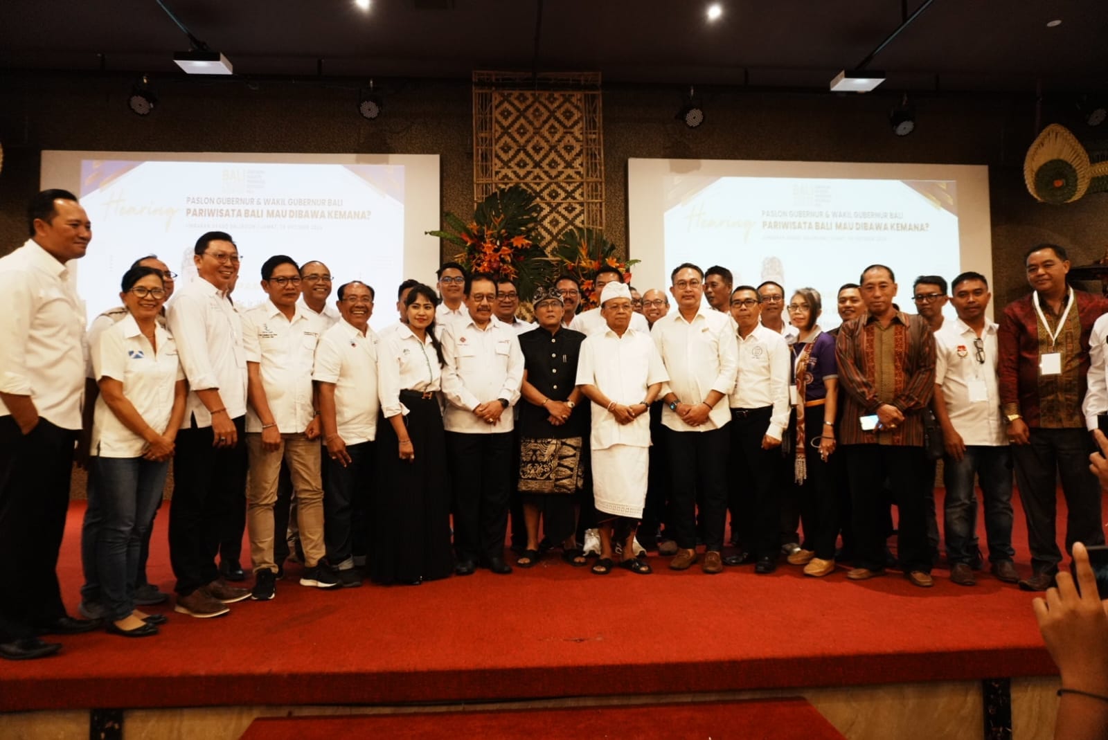 Hearing Pariwisata Bali Mau dibawa kemana diikuti Paslon nomor 1 Mulia Pas (Made Muliawan Arya dan Putu Agus Suratnyana) dan Paslon Cagub Bali nomor 2 Wayan Koster dan Giri Prasta (Koster-Giri). (*/red)