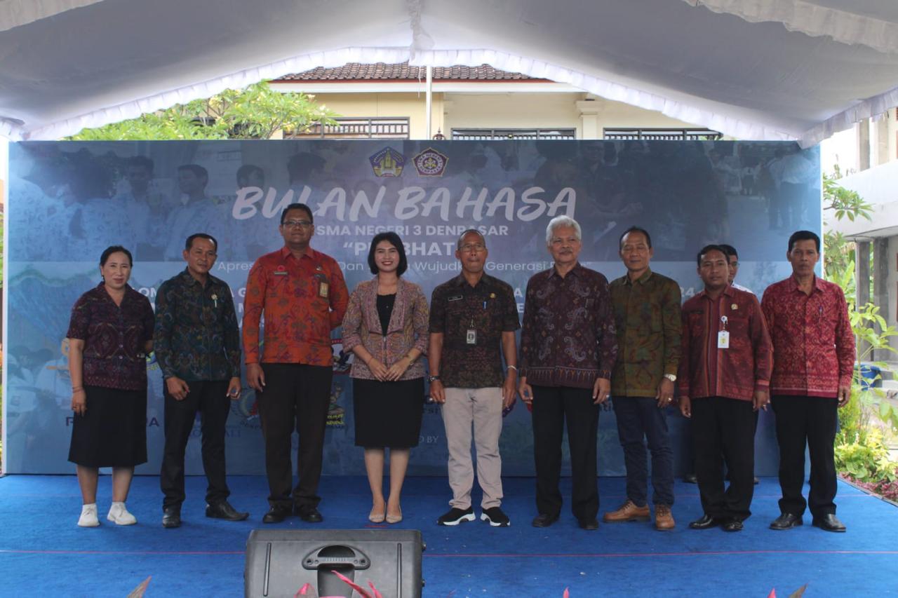 Sekretaris Dinas Pendidikan, Kepemudaan dan Olahraga Kota Denpasar, I Ketut Dirga membacakan sambutan Pjs. Walikota Denpasar mengatakan apresiasi kepada seluruh jajaran SMAN 3 Denpasar yang telah menggelar peringatan Bulan Bahasa yang secara maksimal telah melibatkan potensial siswa dan siswi di SMAN 3 Denpasar.