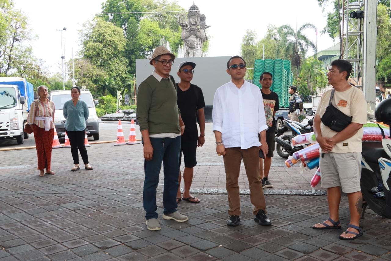 DENPASAR – VISIBALI.COM. Walikota Denpasar, I Gusti Ngurah Jaya Negara, meninjau langsung kesiapan pelaksanaan Denpasar Festival (Denfest) Ke-17 di kawasan Catur Muka, Lapangan Puputan Badung, I Gusti Ngurah Made Agung, Sabtu (21/12/2024). Kegiatan ini dilakukan untuk memastikan segala persiapan, termasuk panggung utama, stand kuliner, fashion, serta logistik lainnya, menjelang pembukaan resmi pada 22 Desember 2024.