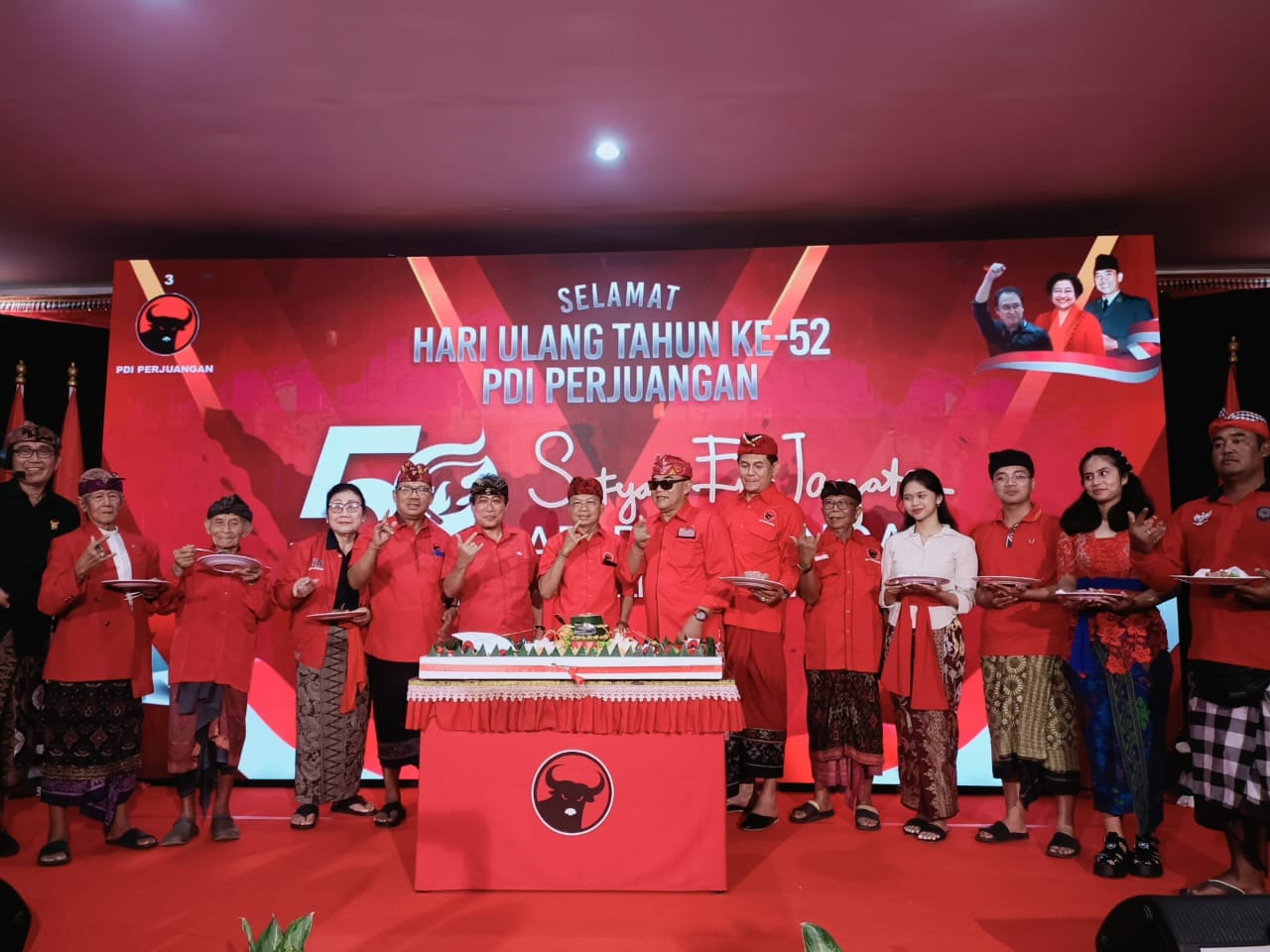 Perayaan HUT ke-52 PDI Perjuangan kali ini mengusung tema *Satyam Eva Jayate* atau “Kebenaran Pasti Menang” dengan subtema “Api Perjuangan Nan Tak Kunjung Padam”.