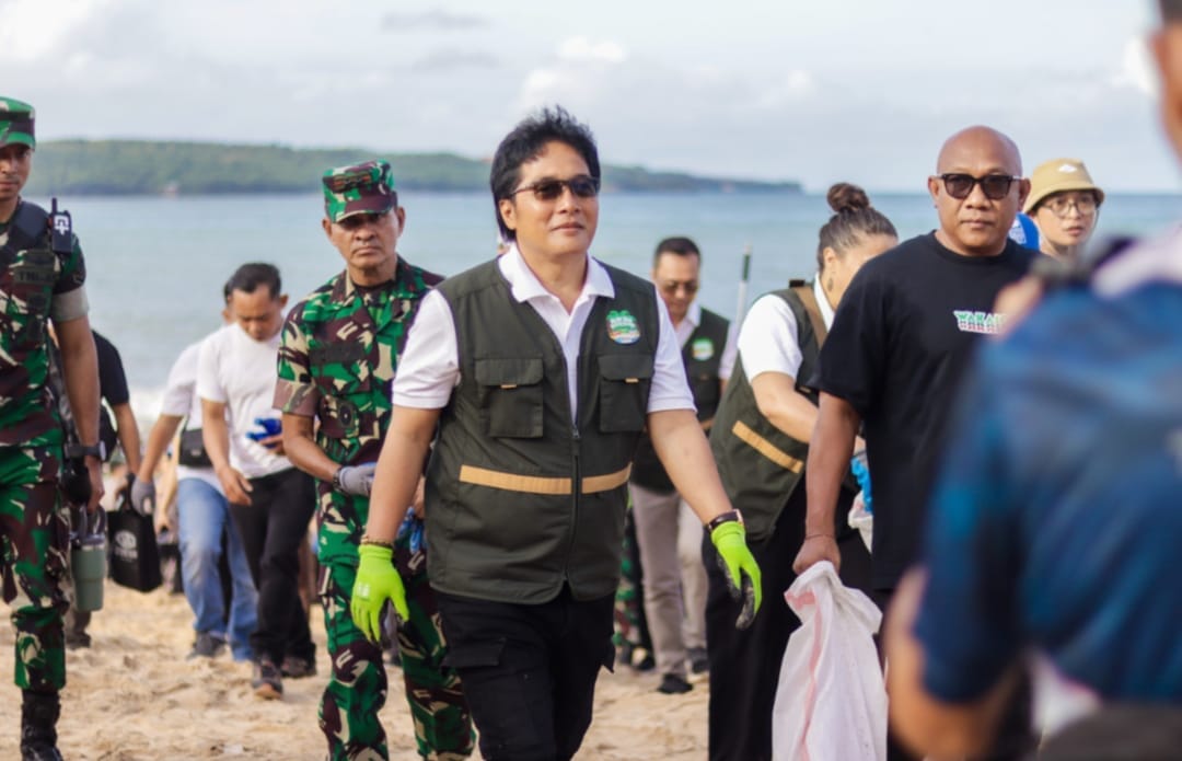 Bupati Giri Prasta Hadiri Aksi Bersih-Bersih Sampah di Pantai Kedonganan