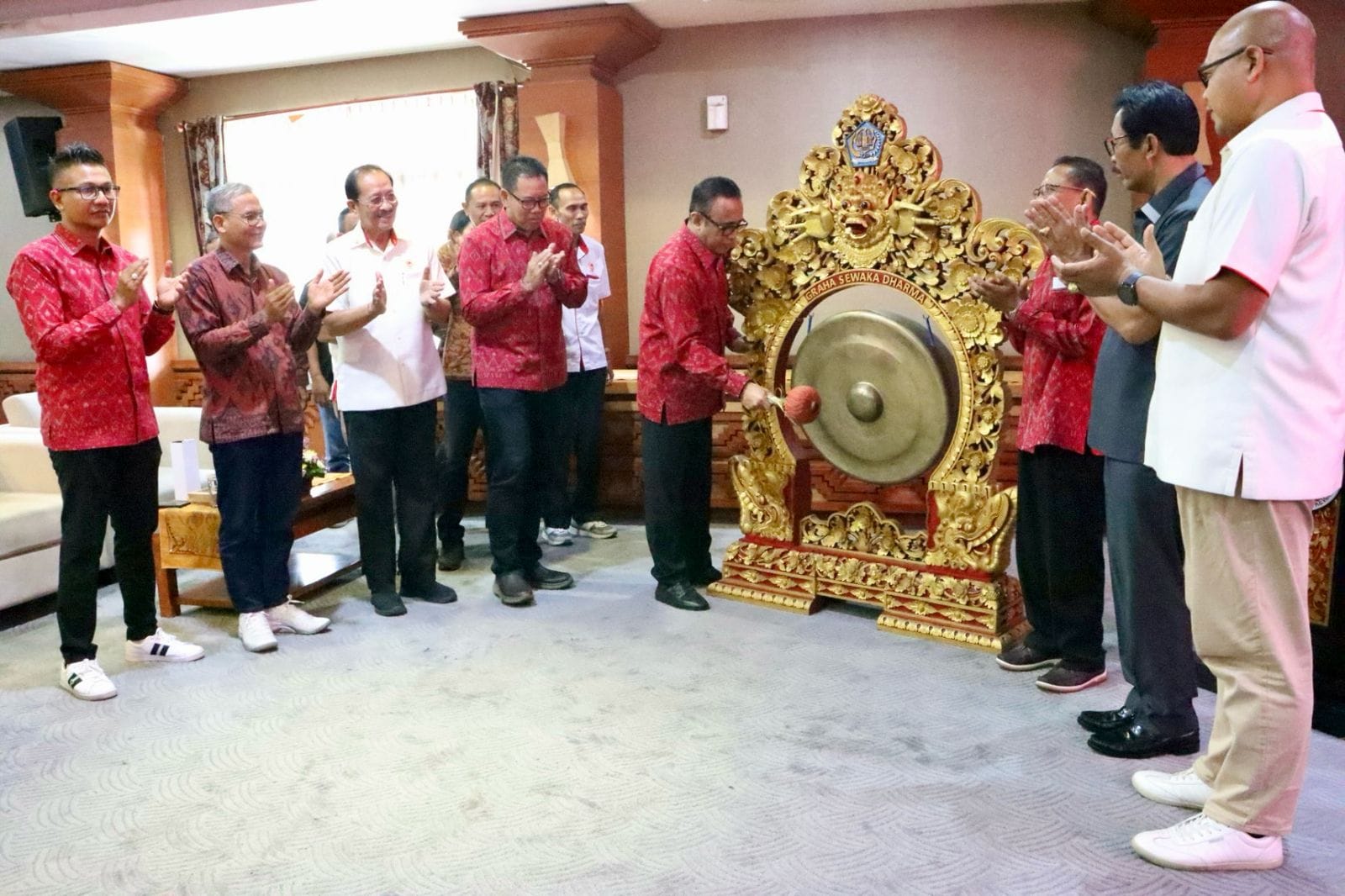 DENPASAR – VISIBALI.COM. Ketua Umum KONI Kota Denpasar, I Putu Yudi Atmika dan Kepengurusan KONI Kota Denpasar periode 2025-2029 secara resmi dikukuhkan. Pengukuhan dilaksanakan Ketua Umum KONI Provinsi Bali, I Gusti Ngurah Oka Darmawan yang disaksikan langsung Walikota Denpasar, I Gusti Ngurah Jaya Negara sekaligus membuka rapat pengurus Koni yang ditandai dengan pemukulan gong di Gedung Sewaka Darma, Lumintang, Denpasar, Jumat (7/3/2025).