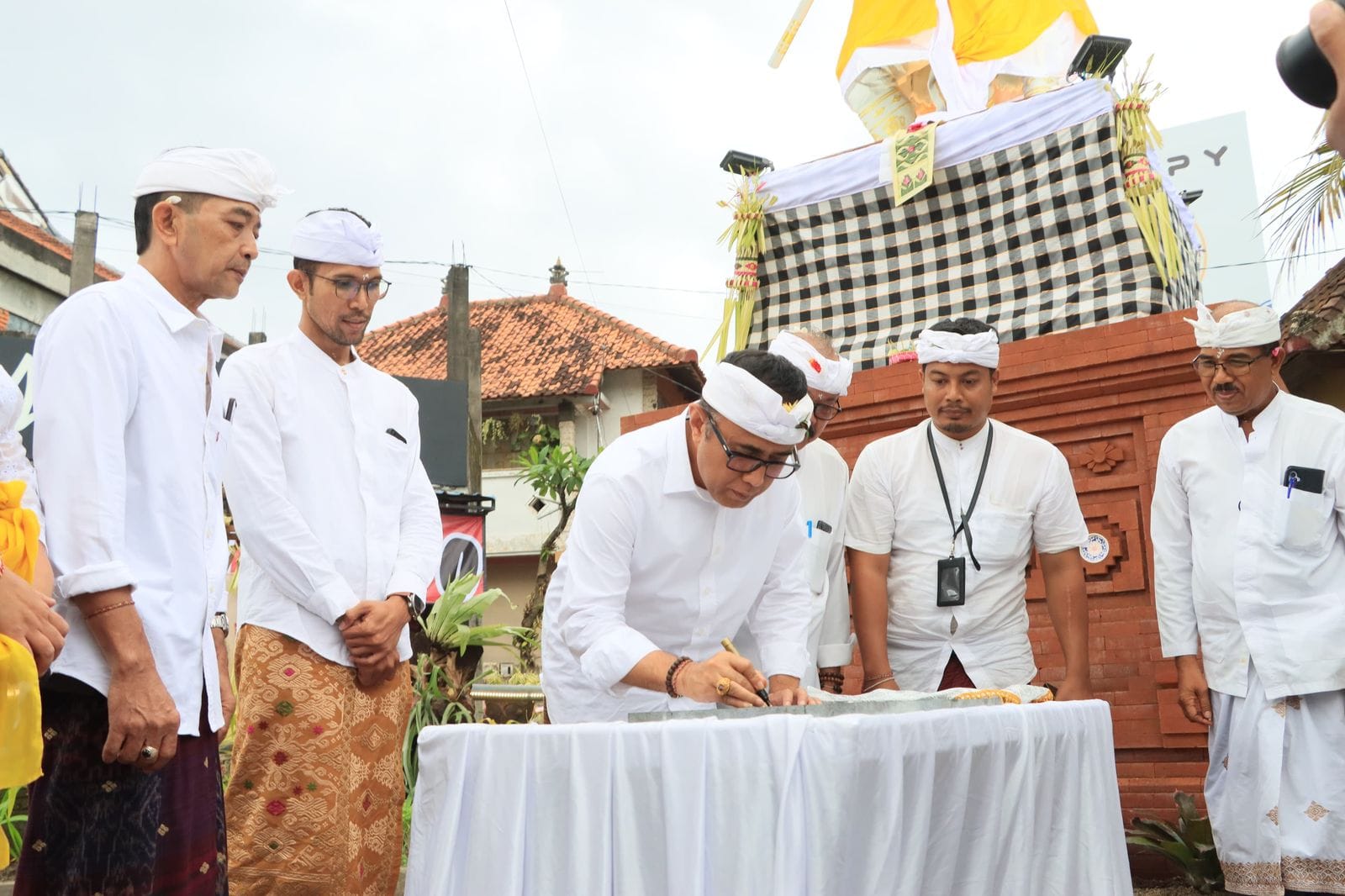 DENPASAR – VISIBALI.COM. Walikota Denpasar, I Gusti Ngurah Jaya Negara menghadiri upacara “Pemelaspasan” Patung “Maburu” pada Jumat (14/3/2025) di Pertigaan Jalan Waturenggong, Desa Adat Panjer.