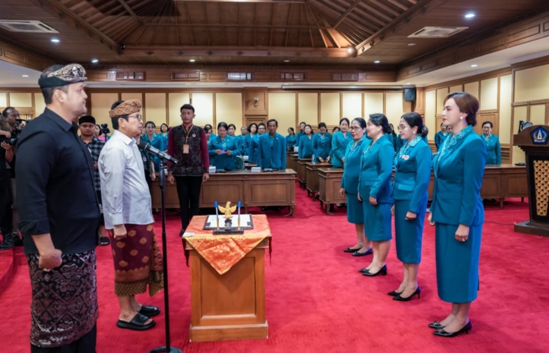 MANGUPURA – VISIBALI.COM. Bupati Badung I Wayan Adi Arnawa menghadiri serah terima jabatan (Sertijab) Ketua Tim Penggerak (TP) PKK Badung sekaligus melantik Pengurus TP. PKK Kabupaten Badung, Ketua Tim Pembina Posyandu serta Ketua Dewan Kerajinan Nasional Daerah (Dekranasda) Kabupaten Badung yang juga dirangkaikan dengan pelantikan pengurus baru untuk masa bakti 2025-2030. Sertijab di Ruang Madya Gosana Lantai III Gedung DPRD Kabupaten Badung, Kamis (20/3/2025), diawali pembacaan SK. Serah Terima Jabatan dan SK. Pelantikan Ketua TP. PKK oleh Bupati Badung dengan dilanjutkan penandatanganan naskah serah terima jabatan serta naskah pelantikan pengurus lama dan baru.
