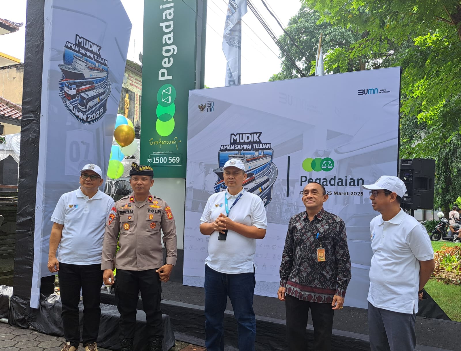 Pemimpin Wilayah PT Pegadaian Kanwil VII Denpasar, Arief Rinardi Sunardi, bersama Asisten Perekonomian dan Pembangunan Kota Denpasar, Anak Agung Gde Risnawan, S.Sos., M.H., serta Kapolsek Denpasar Timur, Ketut Tomiyasa, S.H., M.H., secara resmi melepas keberangkatan 209 pemudik. Sebanyak lima bus disediakan untuk mengangkut pemudik dengan rute Denpasar–Malang, Denpasar–Jember–Lumajang, dan Denpasar–Surabaya. Pelepasan dilakukan di halaman kantor PT Pegadaian Kanwil VII Denpasar pada Selasa (25/3/2025).