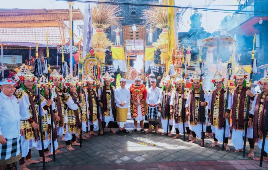 MANGUPURA – VISIBALI.COM. Bupati Badung I Wayan Adi Arnawa menghadiri Karya Mamungkah, Ngenteg Linggih, Tawur Balik Sumpah, Pedudusan Menawa Ratna di Pura Dalem Pejarakan Ulun Lencana, Desa Adat Kerobokan, Desa Padangsambian Klod, bertepatan dengan rahina Anggara Kasih Julungwangi, Selasa (8/4/2025).
