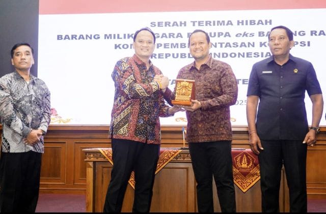 Hibah BMN diserahkan oleh Direktur Pelacakan Aset, Pengelolaan Barang Bukti dan Eksekusi (Labuksi) KPK RI Mungki Hadipratikto, diterima Wakil Bupati Badung Bagus Alit Sucipta. Hadir Ketua DPRD Badung I Gusti Anom Gumanti, Wakil Ketua DPRD I Made Sunarta, Forkopimda Badung, Sekda Badung IB. Surya Suamba beserta Pimpinan Perangkat Daerah, Kepala Satgas Eksekusi pada Direktorat Labuksi KPK RI Leo Sukoto Manalu beserta Tim KPK RI, Camat, Perbekel, Lurah dan Bendesa Adat se-Badung serta Kepala Lingkungan se-Kuta Utara.