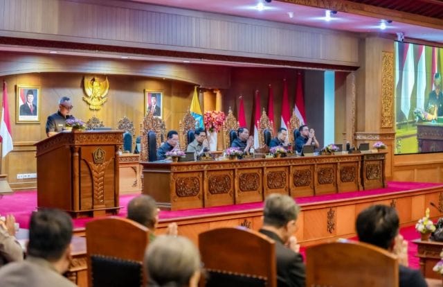 MANGUPURA – VISIBALI.COM. Bupati Badung I Wayan Adi Arnawa menghadiri Rapat Paripurna dengan agenda Penyampaian Pandangan Umum Fraksi-Fraksi DPRD Kabupaten Badung terhadap Rancangan KUA serta PPAS Kabupaten Badung Tahun Anggaran 2026 dan Raperda tentang perubahan APBD Kabupaten Badung Tahun Anggaran 2025, bertempat di Ruang Sidang Utama Gosana Kantor DPRD Badung, Rabu, (13/8). Rapat Paripurna ini dipimpin Ketua DPRD Badung I Gusti Anom Gumanti yang didampingi oleh para Wakil Ketua.