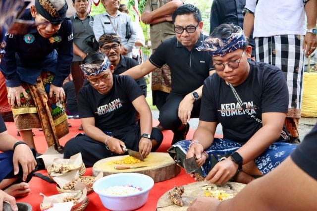 DENPASAR – VISIBALI.COM. Wakil Walikota Denpasar, I Kadek Agus Arya Wibawa membuka secara resmi kegiatan Bulan Bhakti Karang Taruna, Festival Pangan dan Cipta Menu, serta peringatan Perayaan HUT ke-80 Republik Indonesia di Desa Sumerta Kelod di tandai dengan Pemukulan Kul-Kul, Jumat (15/8/2025).