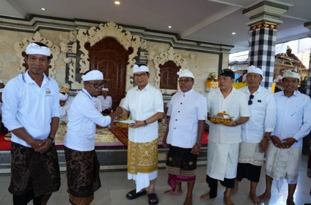 BADUNG – VISIBALI.COM. Bupati Badung I Wayan Adi Arnawa menghadiri atau upasaksi Karya Mamungkah, Ngenteg Linggih, Padudusan Alit Wraspati Kalpa, Tawur Balik Sumpah Madya di Pura Uluning Banjar dan Balai Banjar Kedua, Desa Baha, Kecamatan Mengwi, Rabu (3/9).