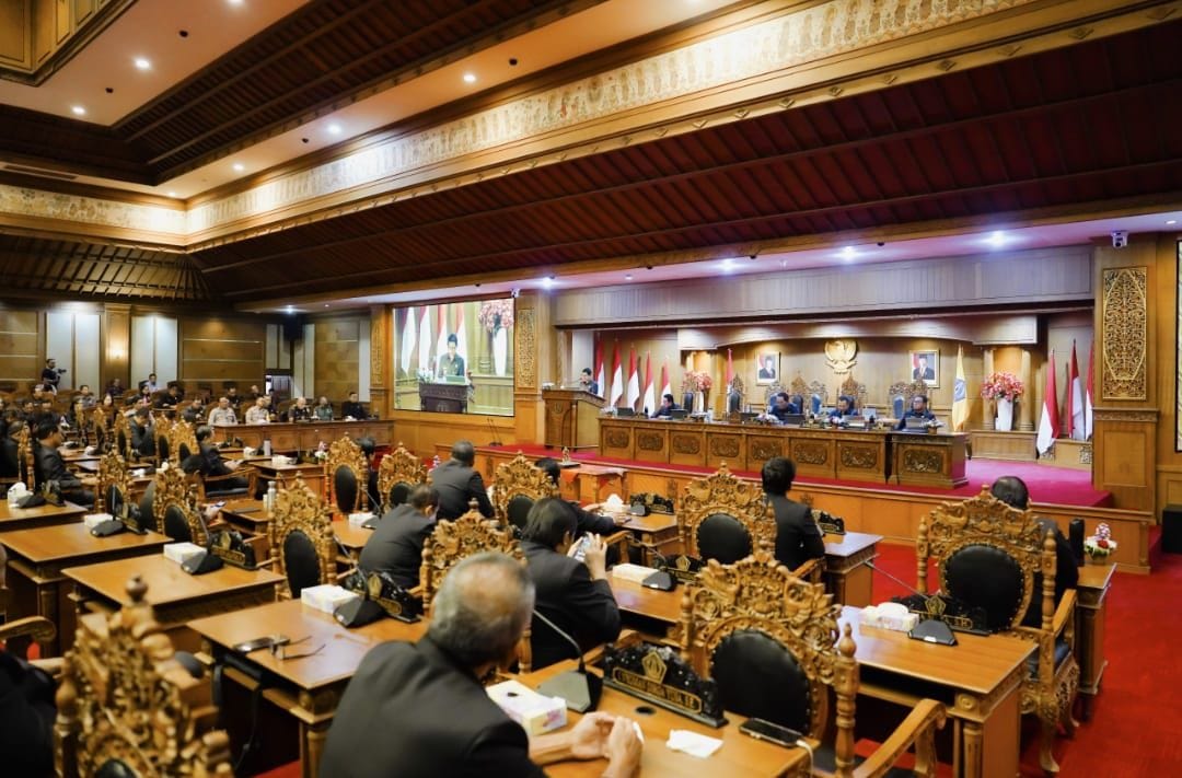 Penetapan Raperda APBD 2026 dan tiga produk hukum daerah tersebut dituangkan dalam penandatangan nota kesepakatan oleh Bupati Badung I Wayan Adi Arnawa bersama Pimpinan DPRD Badung pada Rapat Paripurna DPRD di Ruang Rapat Utama Gosana, Kantor DPRD Badung, Senin (24/11). Rapat paripurna dipimpin Ketua DPRD Badung I Gusti Anom Gumanti dan diikuti Pimpinan dan Anggota DPRD Badung, Forkopimda, Sekda Badung beserta Pimpinan Perangkat Daerah serta Pimpinan Instansi Vertikal.