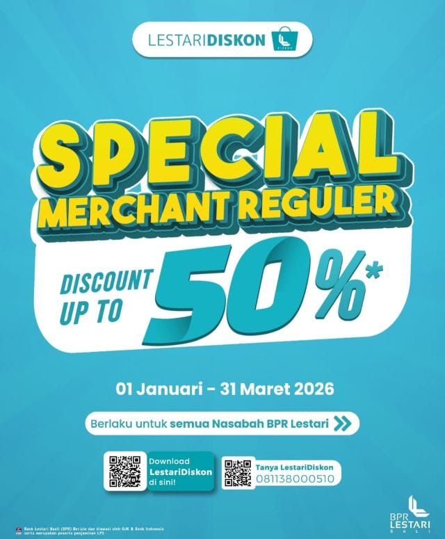 Promo spesial sepanjang Januari ini menjadi bentuk apresiasi BPR Lestari Bali kepada nasabah setia, sekaligus menghadirkan nilai tambah dalam setiap aktivitas transaksi perbankan. Tak sekadar menabung atau bertransaksi, nasabah kini bisa merasakan pengalaman berbelanja yang lebih hemat, praktis, dan menguntungkan.