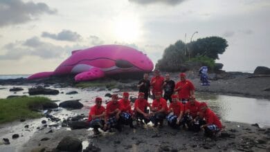 Balon Paus Pink di Tanah Lot Dukung Pelestarian Laut