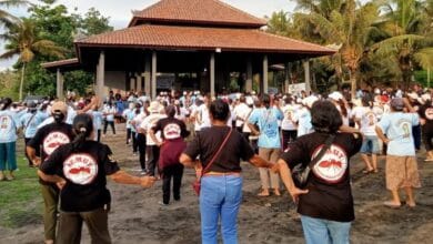 Dewi Mulyawan Arya Didampingi In Mulyadi Silaturahmi Dengan Lansia Batusangian dan Senam Sehat Bahagia di Pantai Soka