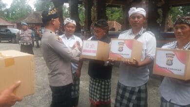 Kapolres Tabanan Bagikan Sembako kepada Karyawan Pengelola Obyek Wisata Pura Luhur Batukau