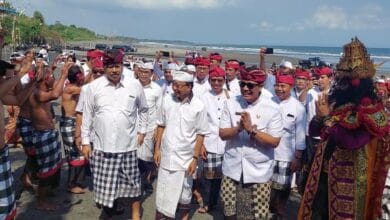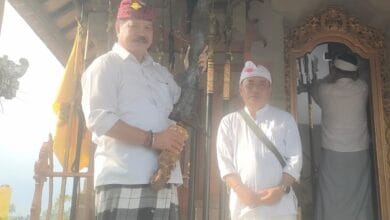 TABANAN – VISIBALI.COM – Ketua DPRD Tabanan I Made Dirga S.Sos ikut dalam prosesi upacara nedunang puluhan keris pusaka…