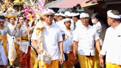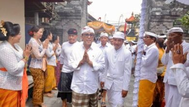 Walikota Jaya Negara dan Wawali Arya Wibawa Hadiri Puncak Karya Memungkah Pura Ulun Danu dan Belong Sesetan