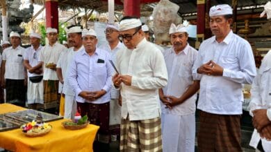 DENPASAR – VISIBALI.COM. Jajaran Pemkot Denpasar melaksanakan persembahyangan serangkaian Pujawali di Pura Dalem Sakenan, Desa Adat Serangan, Denpasar bertepatan dengan…