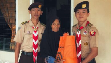 Karya Bakti Pramuka, Kwarcab Badung Bagikan Paket Sembako dan Berikan Informasi Arus Mudik