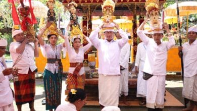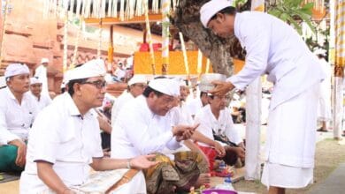 DENPASAR – VISIBALI.COM. Sekretaris Daerah Kota Denpasar, IB Alit Wiradana menghadiri pelaksanaan Bhakti Penyineban serangkaian Karya Melaspas Caru Manca Rupa…